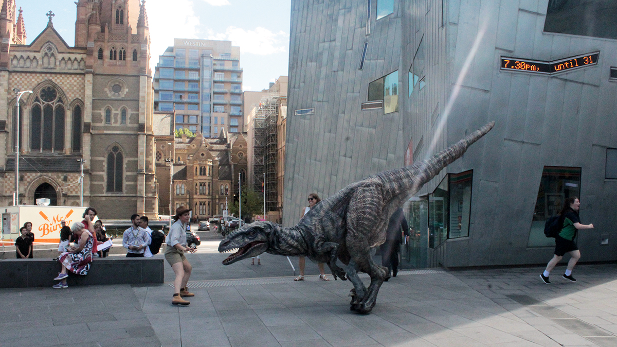 Un dino à Federation Square