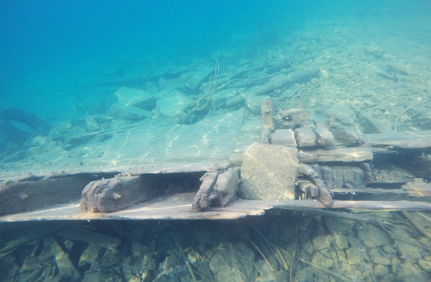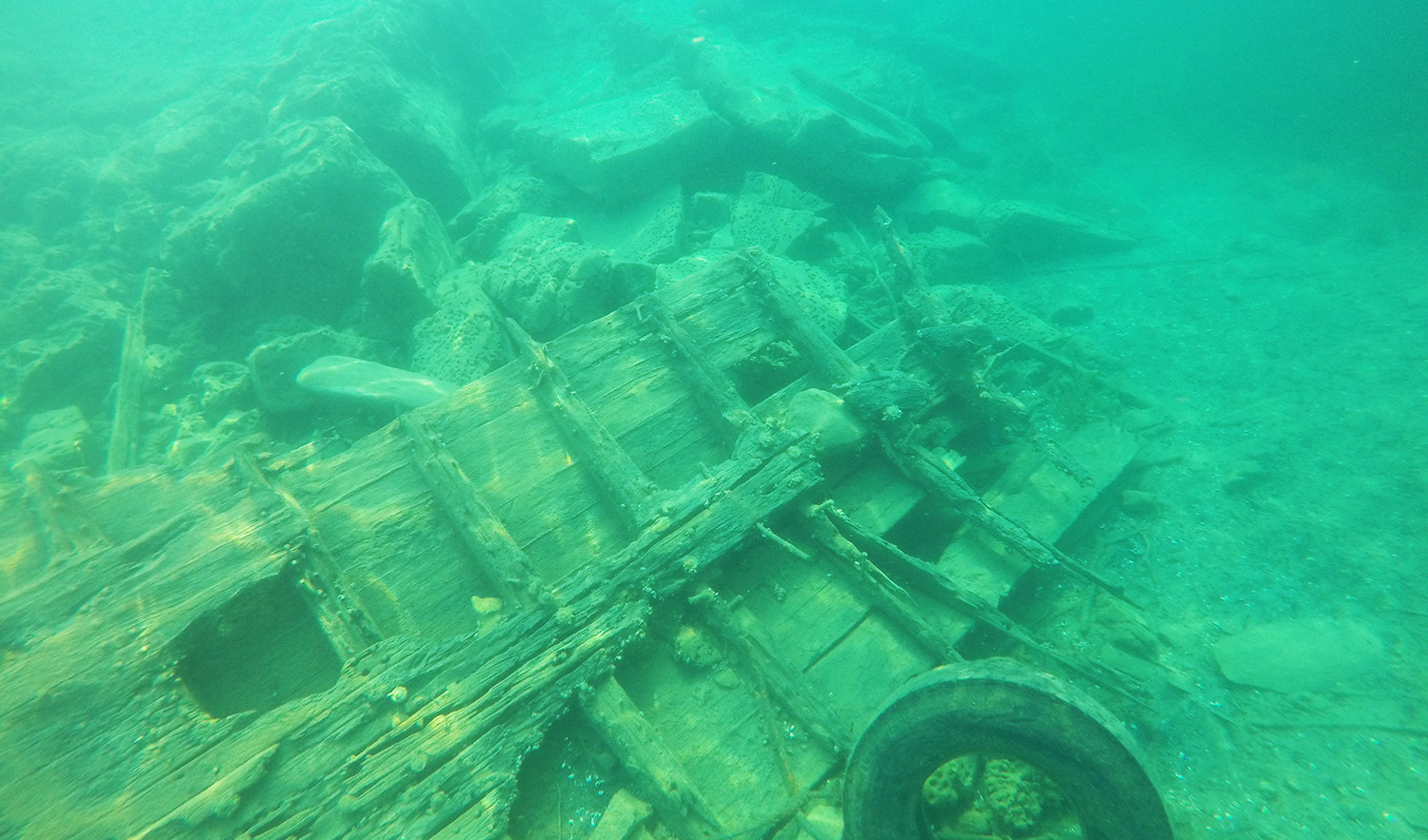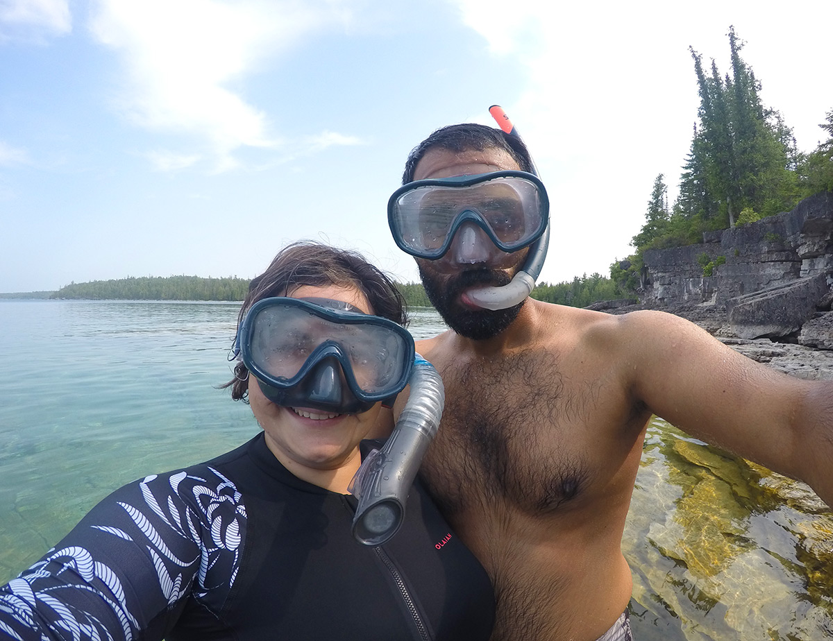 Sans doute l’activité phare du parc Fathom Five. Nous partons en milieux de matinée à bords d’un zodiac pour nous rendre sur l’île. En chemin, nous arrêtons proche de 2 épaves peu profonde que nous pouvons voir. Nous apprenons l’histoire de ces mystères.