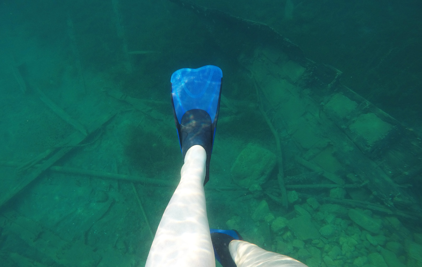 Nous rejoignons Tobermory. 4 spots sont accessible pour explorer les épaves. Des groupes de plongeurs sont présent ainsi que plusieurs personnes snorkelling, en kayak, en paddle. Je parcours les alentours muni de mon masque et tuba. L’eau est si clair qu’on peux voir facilement à 10m de profondeur. Ce sera le froid qui m’a chassé de l’eau.