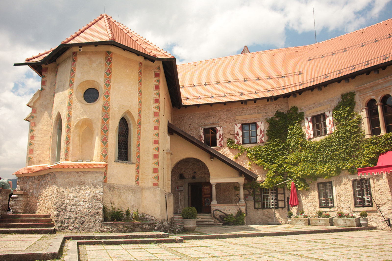 À peine arrivé, je suis immédiatement séduite! Le château au bord de la falaise, le lac Bled à son pied. Dans ce lac, une île, la seule de Slovénie, abrite une chapelle. Un soleil magnifique. Un cadre idyllique qui pourrait facilement servir de décor à un conte de fée.