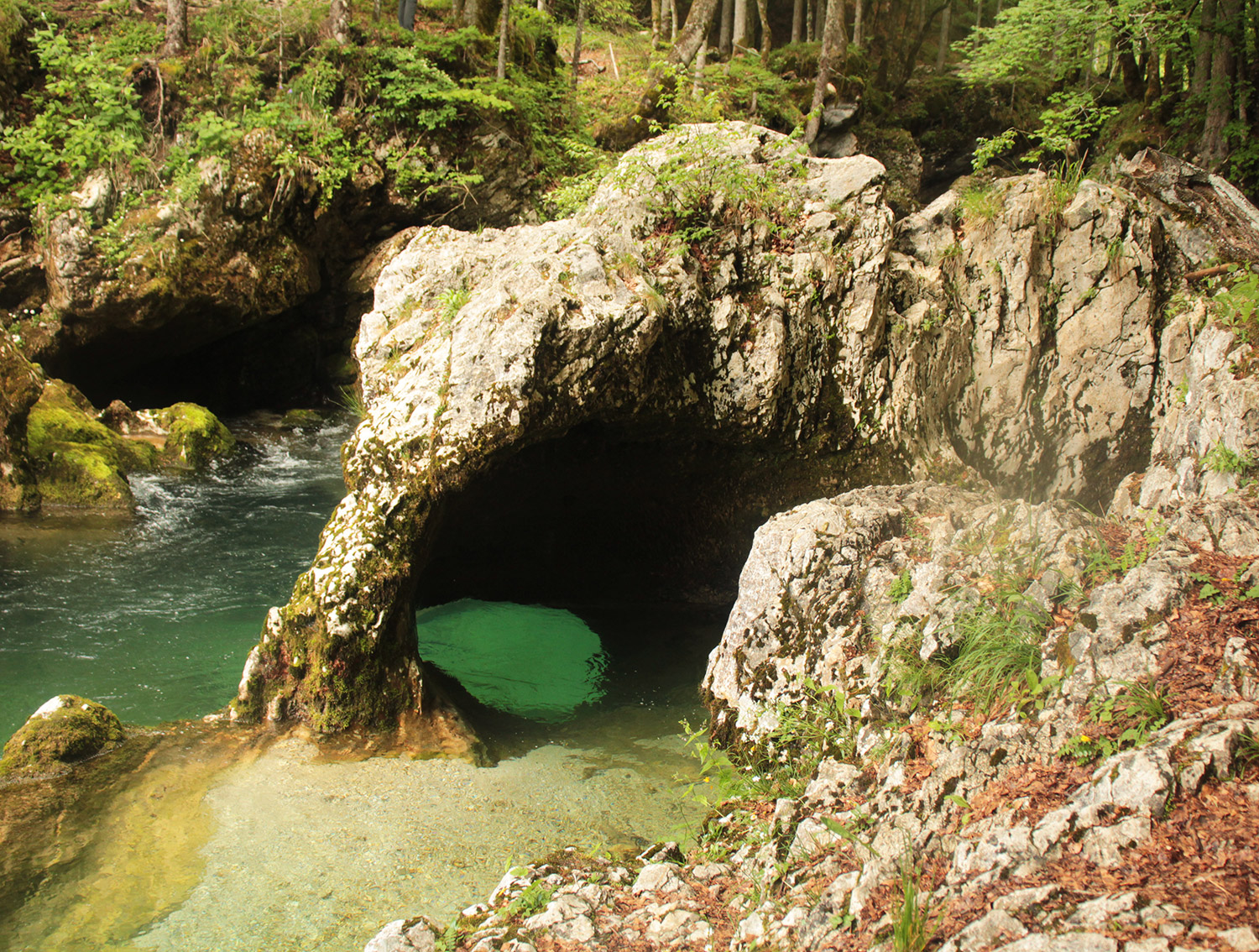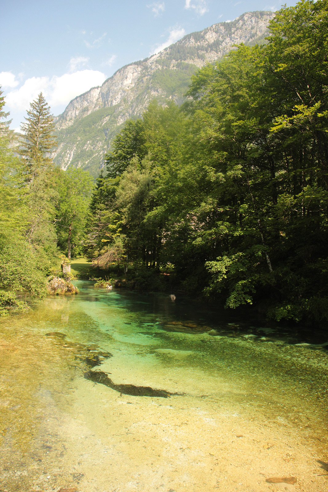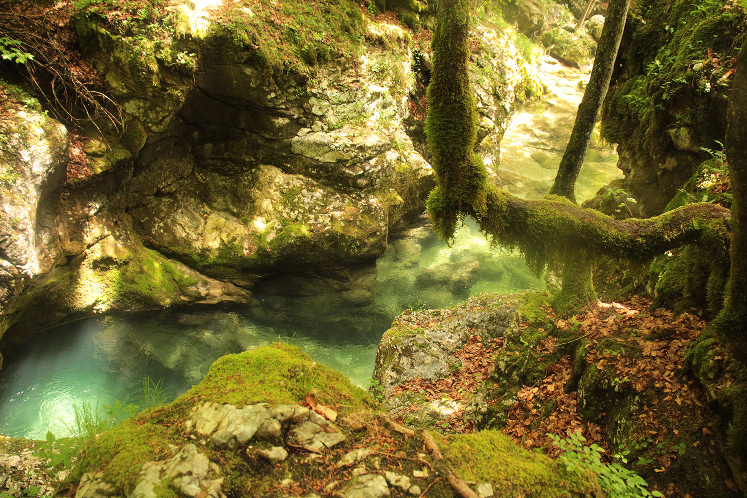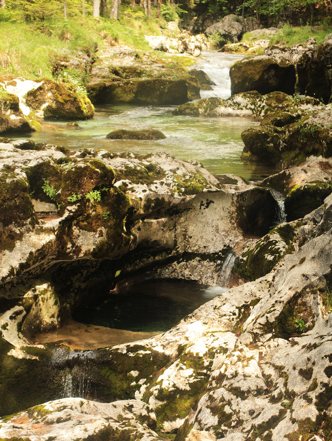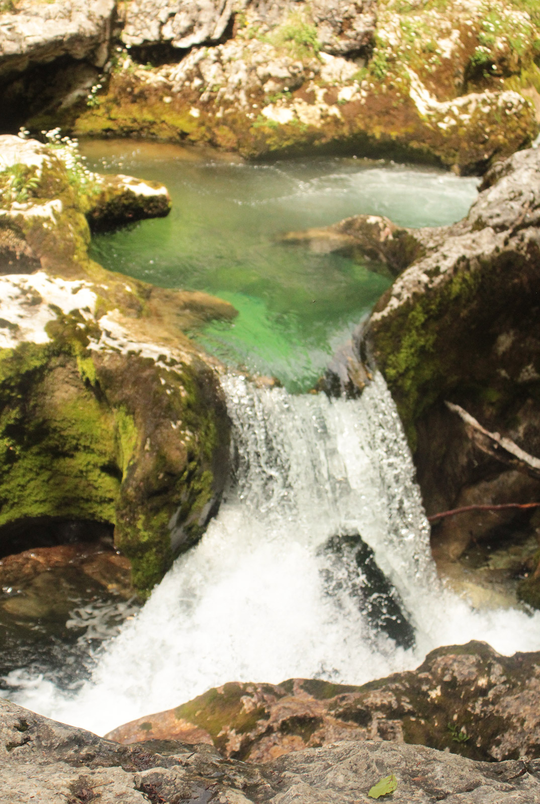 Depuis ma chambre d’hôte, à Stara Fuzina, j’empreinte le sentier pour me rendre aux gorges, qui sont proche. Durant 2km, je m’extasie devant tant de beauté. Ses eaux émeraudes tourbillonnent et créent des petites piscines naturelles. (la baignade est interdite) Plus loin, un rocher prend la forme d’un éléphant, la trompe dans l’eau. Un bel enchantement.