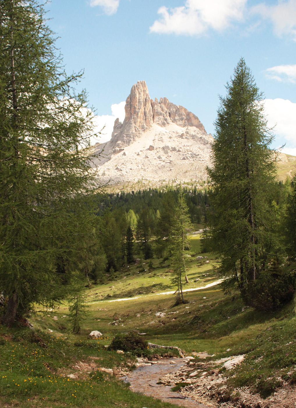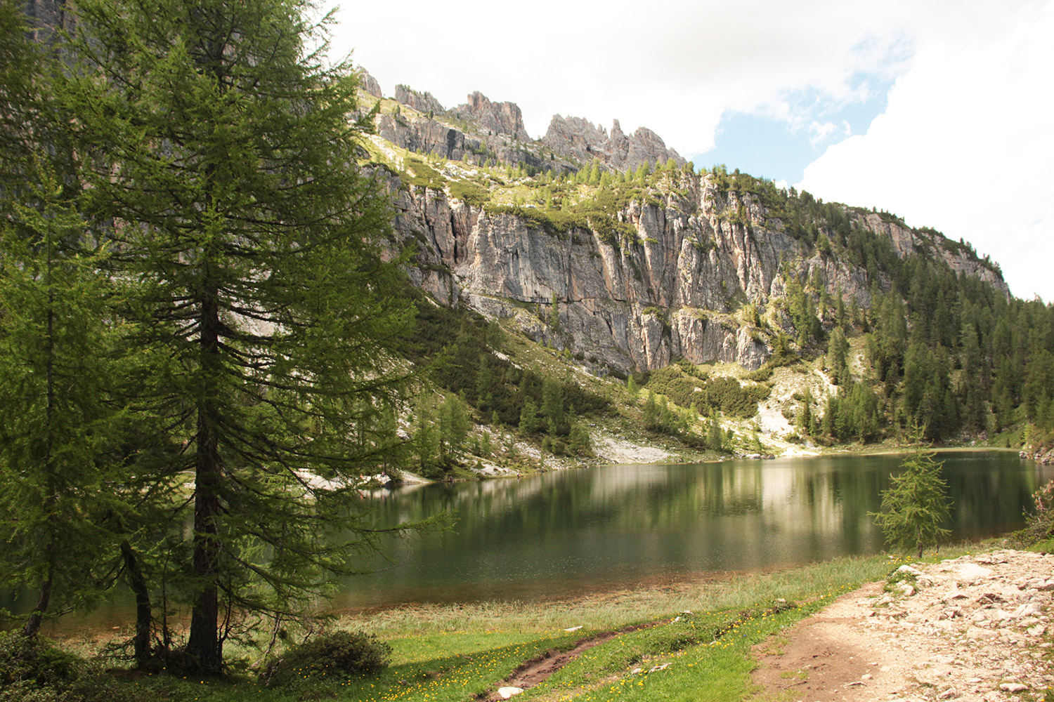 Le long de la Croda da Lago, ses dentelles se reflètent dans le lac. Des ânes en liberté viennent voir les randonneurs et font le bonheur des enfants.