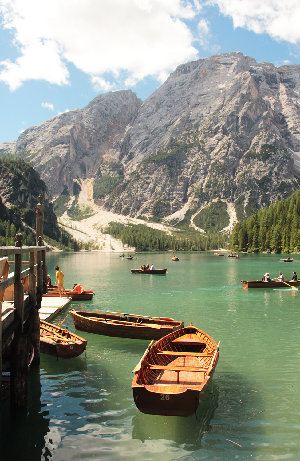Je me rend à Balzano aujourd’hui. En chemin j’ai l’opportunité de m’arrêter au Lago Di Braie, le lac le plus visité des Dolomites.