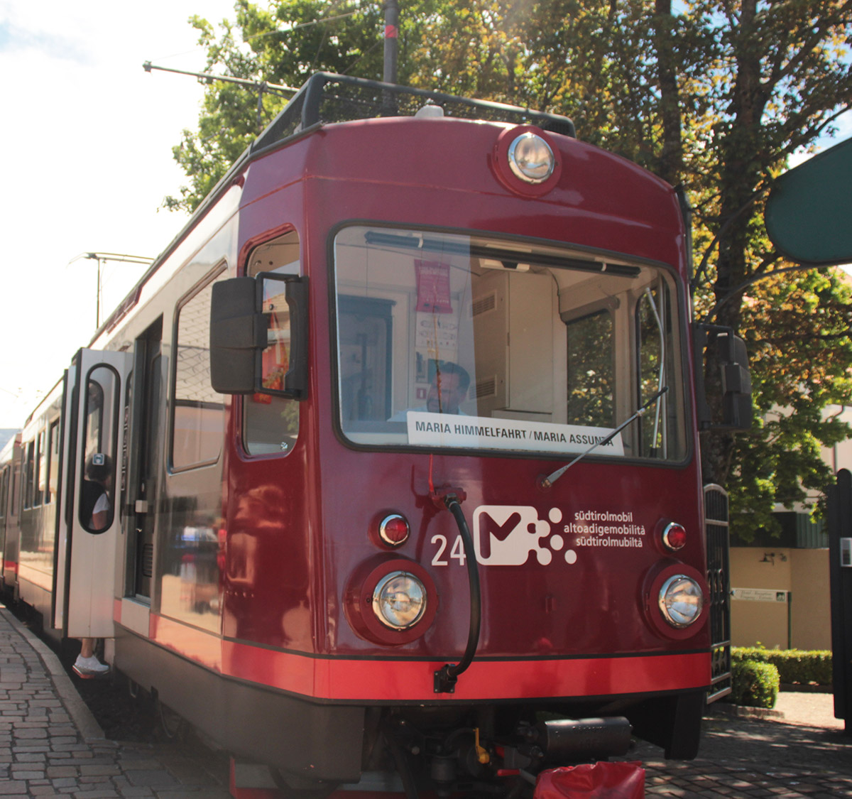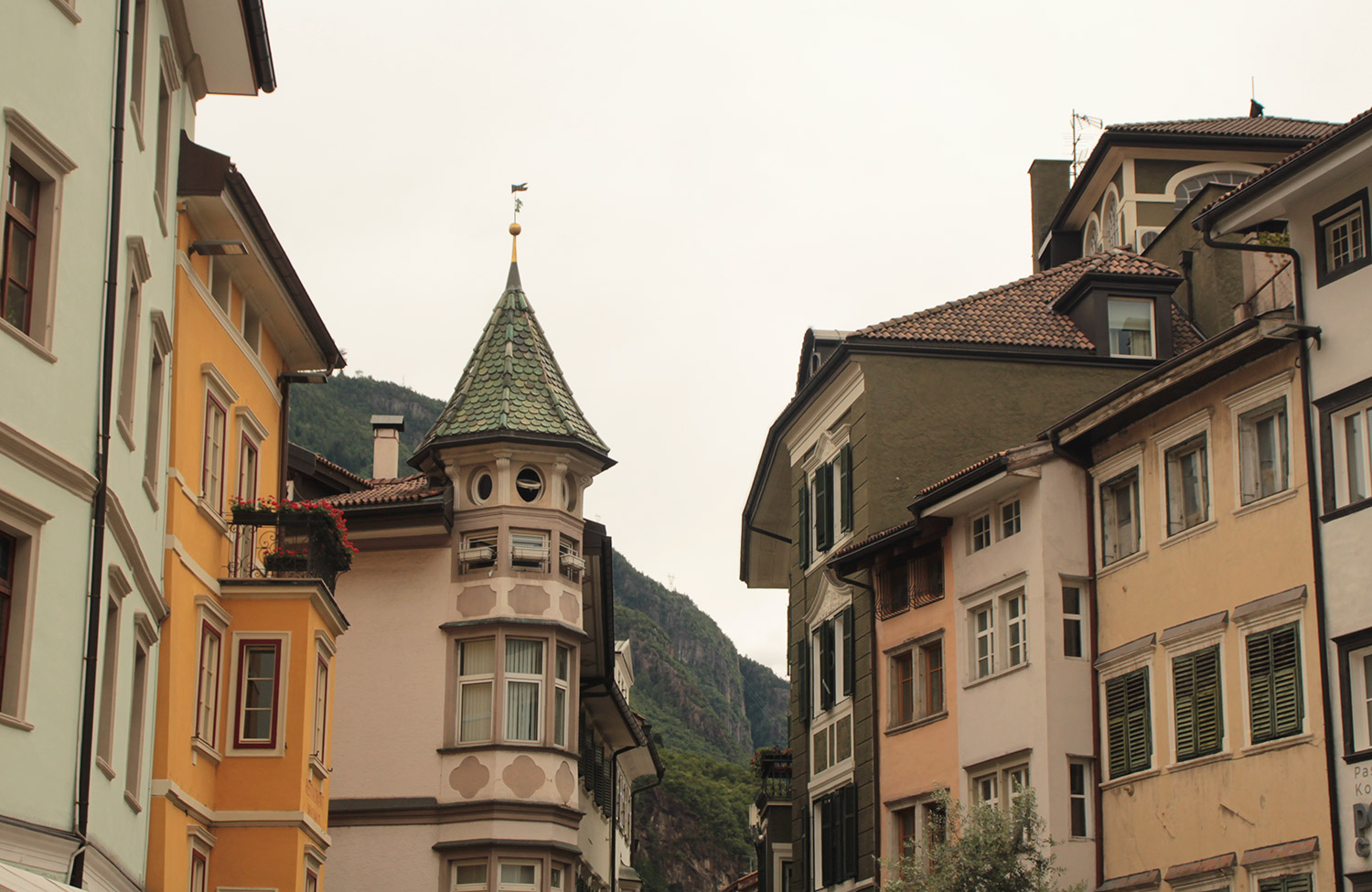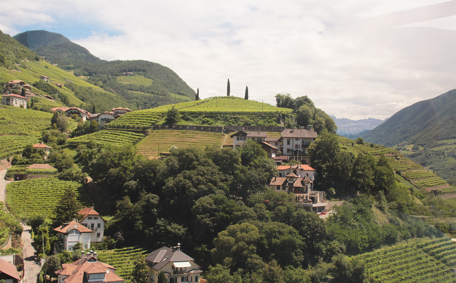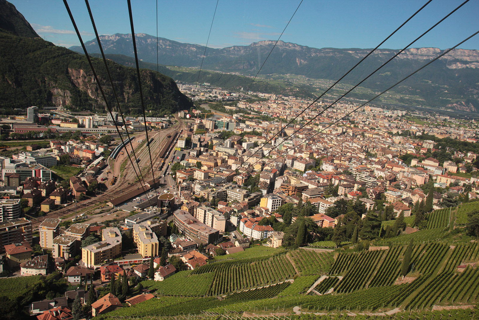 Apres avoir vu le lago di Braie, je rejoins Bolzano en train, situé de l’autre côté des massifs des Dolomites. Changement d’ambiance. Bolzano est la capital du Tyrol Sud. La langue allemande est très présente. On peux voir les Dolomites d’un coté, et les vignes cultivé en terrasse de l’autre. Bien que Bolzano soit une grande villes, les alentours sont magnifique.