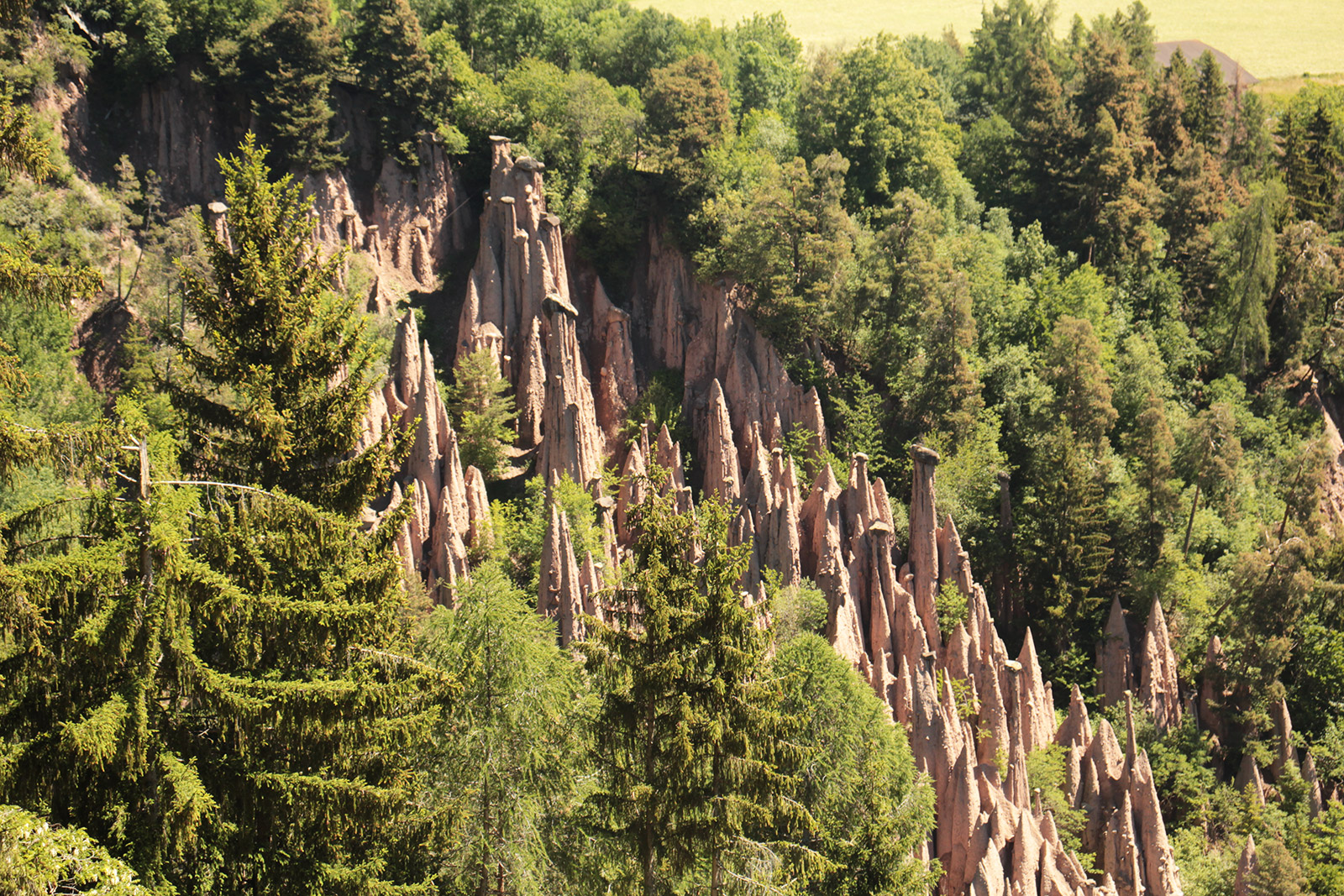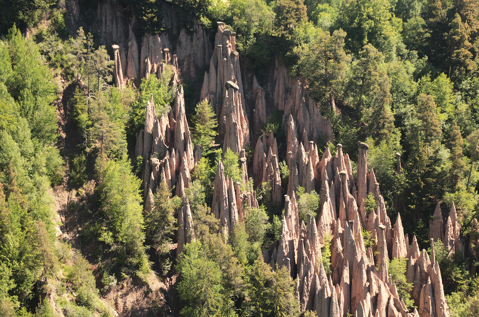 J’arrive aux fameuses pyramides de terre, aussi appelé cheminé de fée, que je vois de loins. L’erosion de la roche au file des siècles les à fait naître. Un beau spectacle unique.