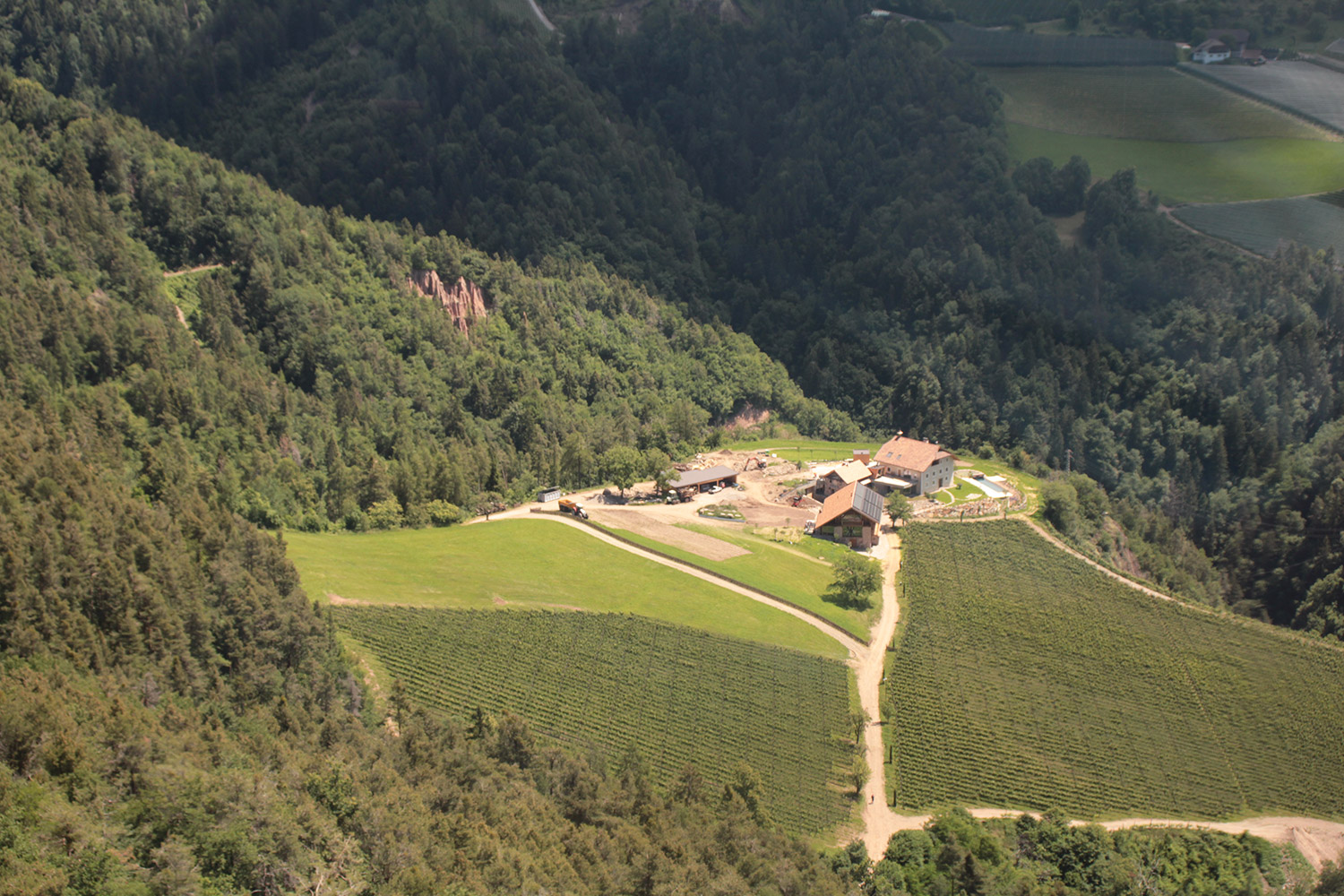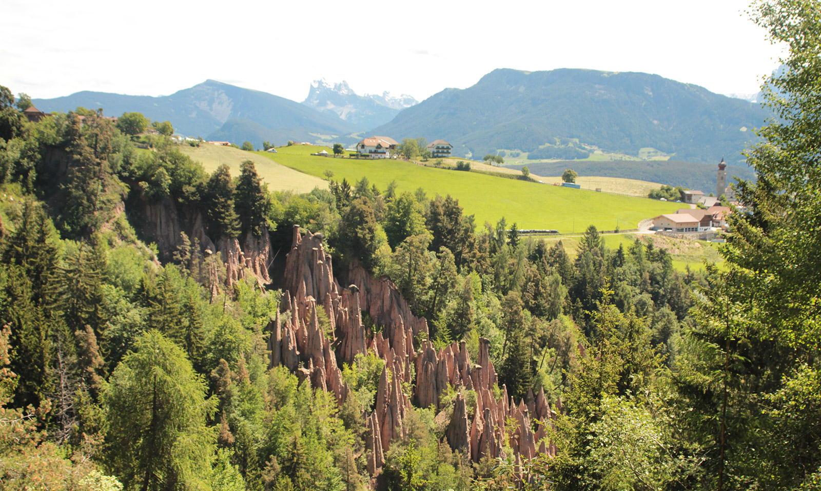 Tout près de Bolzano, les pyramides de terre de Renon, inscrites à l’UNESCO, sont à voir. Pour y accéder, je prend le téléphérique depuis Bolzano, d’où la vue est exceptionnelle avec les vignes. Je rejoins ensuite le train de Renon, avant d’atteindre Collabo et finir à pied.
