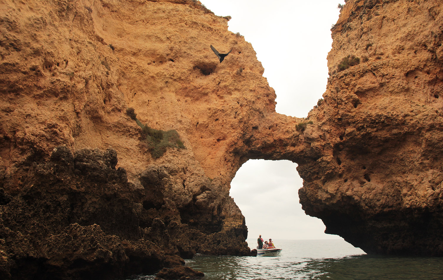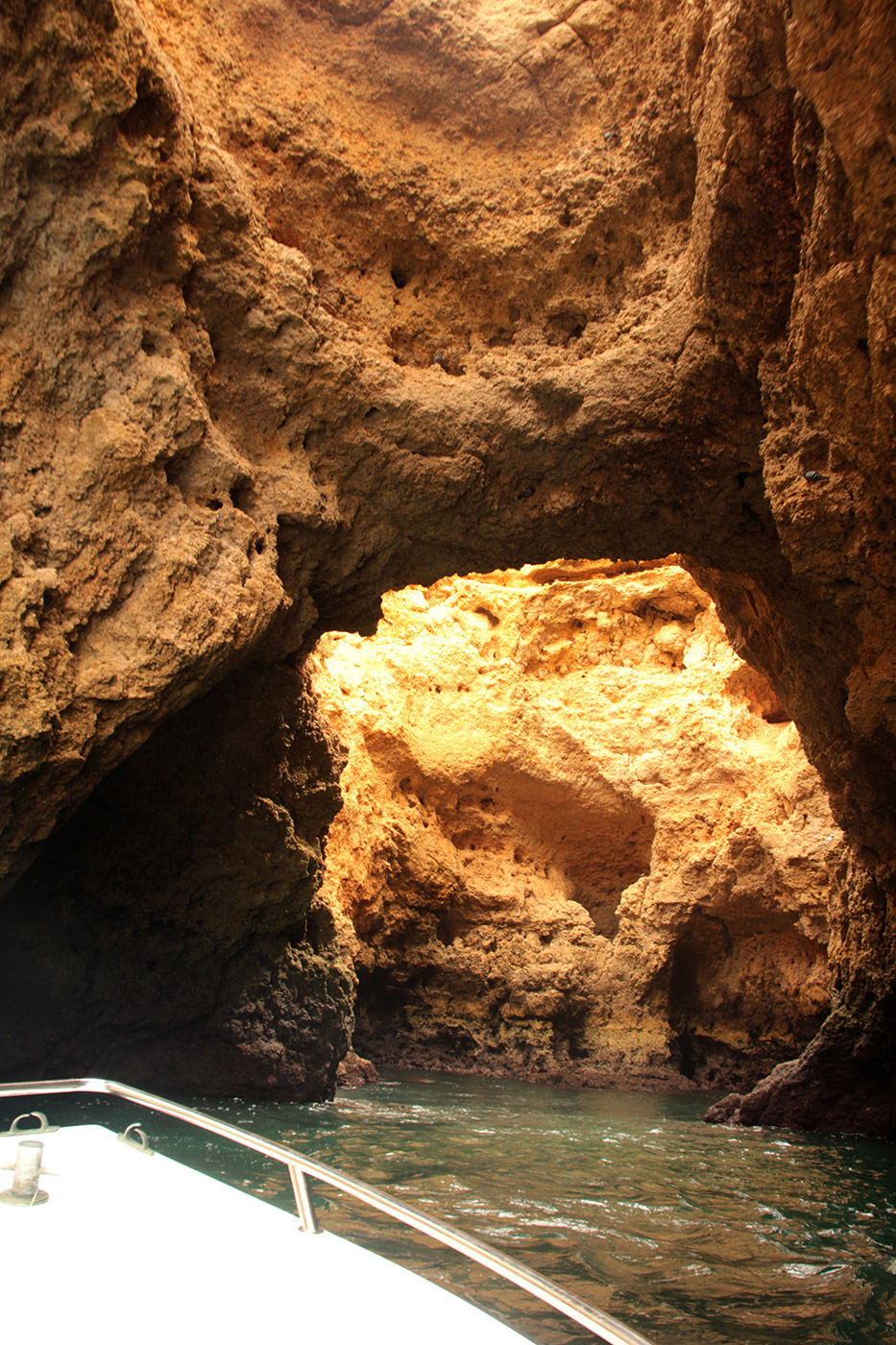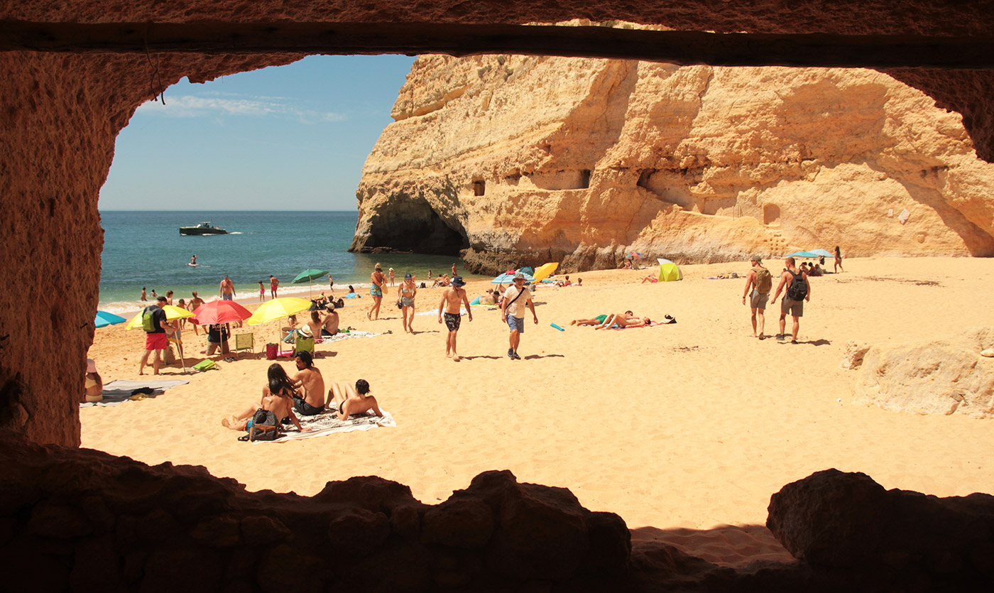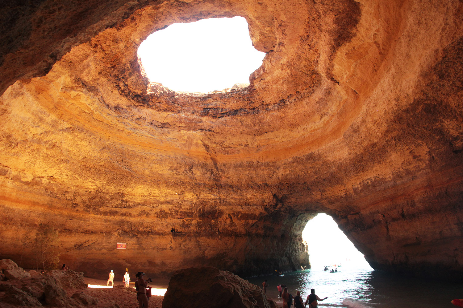 La particularité de Benagil, et qui fait sa renommé, est qu’au sommet de la grotte se trouve un grand œil, illuminant l’espace. Et depuis l’intérieur, c’est magique !