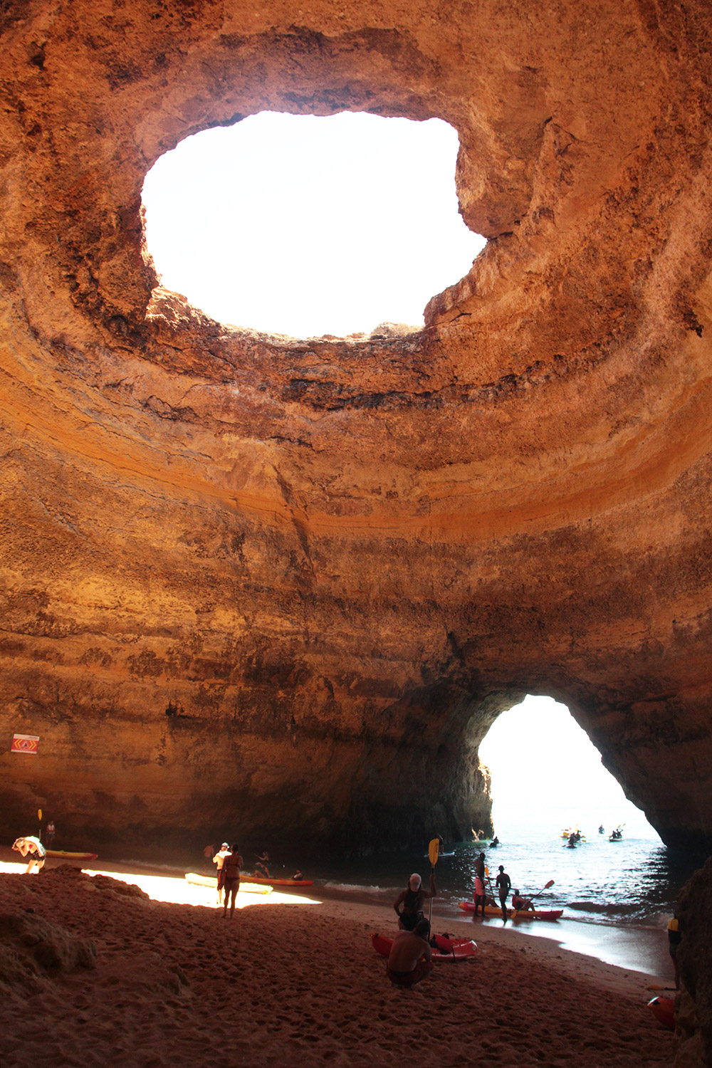 Cela ne pend que 5 à 10 min en kayak avant d’arriver dans la grotte par la mer. J’arrive à la plage à l’intérieur en chavirant sur ses grandes vagues, comme beaucoup. Repartir est tout aussi chaotique.