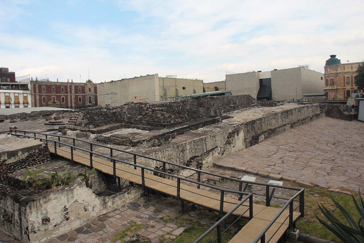 La ville de Mexico fut construite sur l’ancienne capitale aztèque de Tenochtitlan, autrefois construite sur le lac maintenant disparu de Texcoco. Le templo mayor était le bâtiment principale. C’est en 1521 que les conquistdors marque la fin de l’empire aztèque, et détruisent le templo mayor, pour construire sur ce même emplacement, la cathédrale de Mexico. Les pierres ont servit à bâtir la nouvelle ville coloniale espagnole. C’est à la fin du 19ème siècle que les ruines ont commencé a être découvertes.