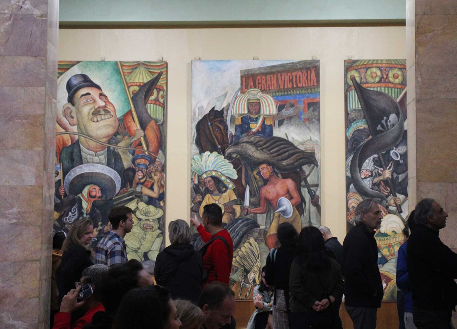 Un bâtiment imposant à l’architecture soignée, le palais des beaux arts se fait remarquer. À l’intérieur est exposé plusieurs murales peintes par plusieurs artistes du mouvement muraliste mexicain. Une exposition de photos est aussi présenté, avec certains clichés très poignants.