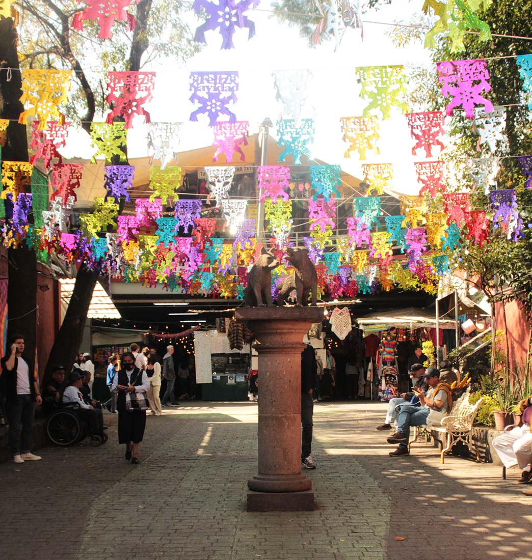 Nous partons explorer le quartier populaire et coloré de Coyoacan avec Juliette et Marie Danielle, rencontré à l’auberge. Un quartier avec une ambiance un peu bohème, c’est ici que se trouve la casa azule, le musée de Frida Kahlo, que je n’aurais malheureusement pas pu découvrir. Il faut réserver au moins 2-3 semaines en avance.