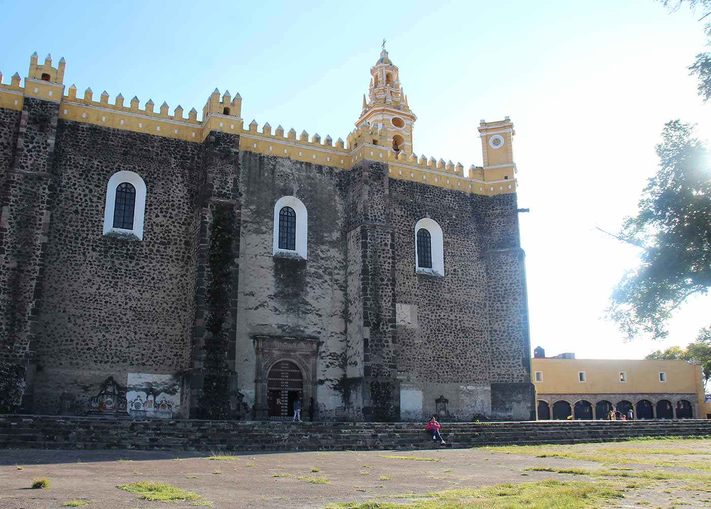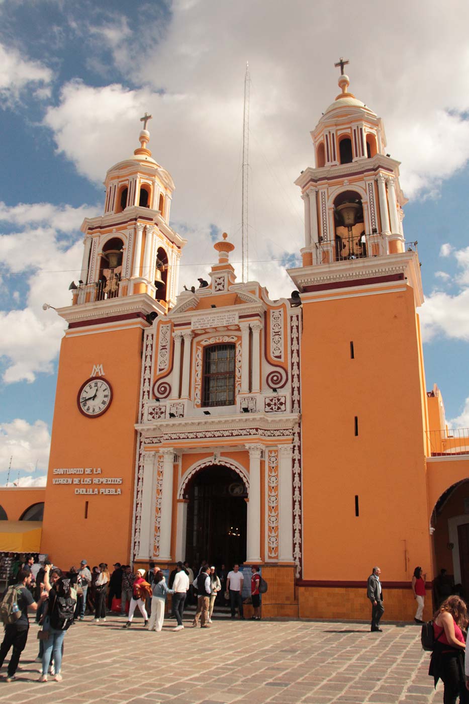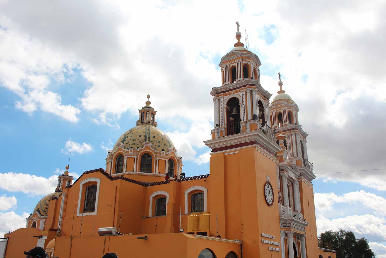 Petite ville à environ 12 km de Puebla, elle à un petit côté charmant. Je retrouve Inti, qui me propose de me faire visiter le centre. Et je suis bien chanceuse, car il adore l’histoire et me partage plein de faits interessants sur Cholula et sa région. Cholula aurait été une place sacrée dans la période pré-hispanique, avec les ruines de la pyramide la plus longue construite. Aujourd’hui, à son sommet, se trouve le Santuario de la Virgen de los Remedios, une église magnifique, richement décoré aussi bien à l’extérieur qu’à l’intérieur. D’ici, nous avons une belle vue sur la ville et le parc national volcanique.