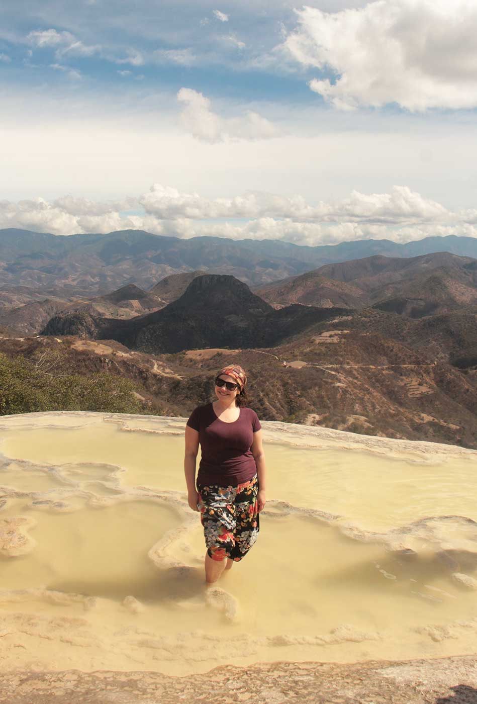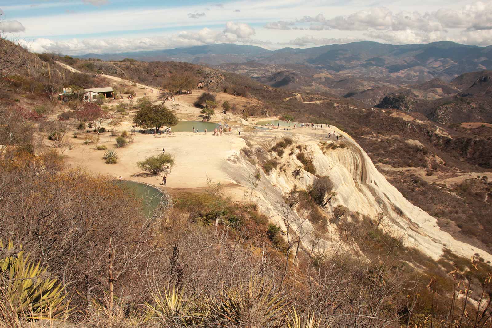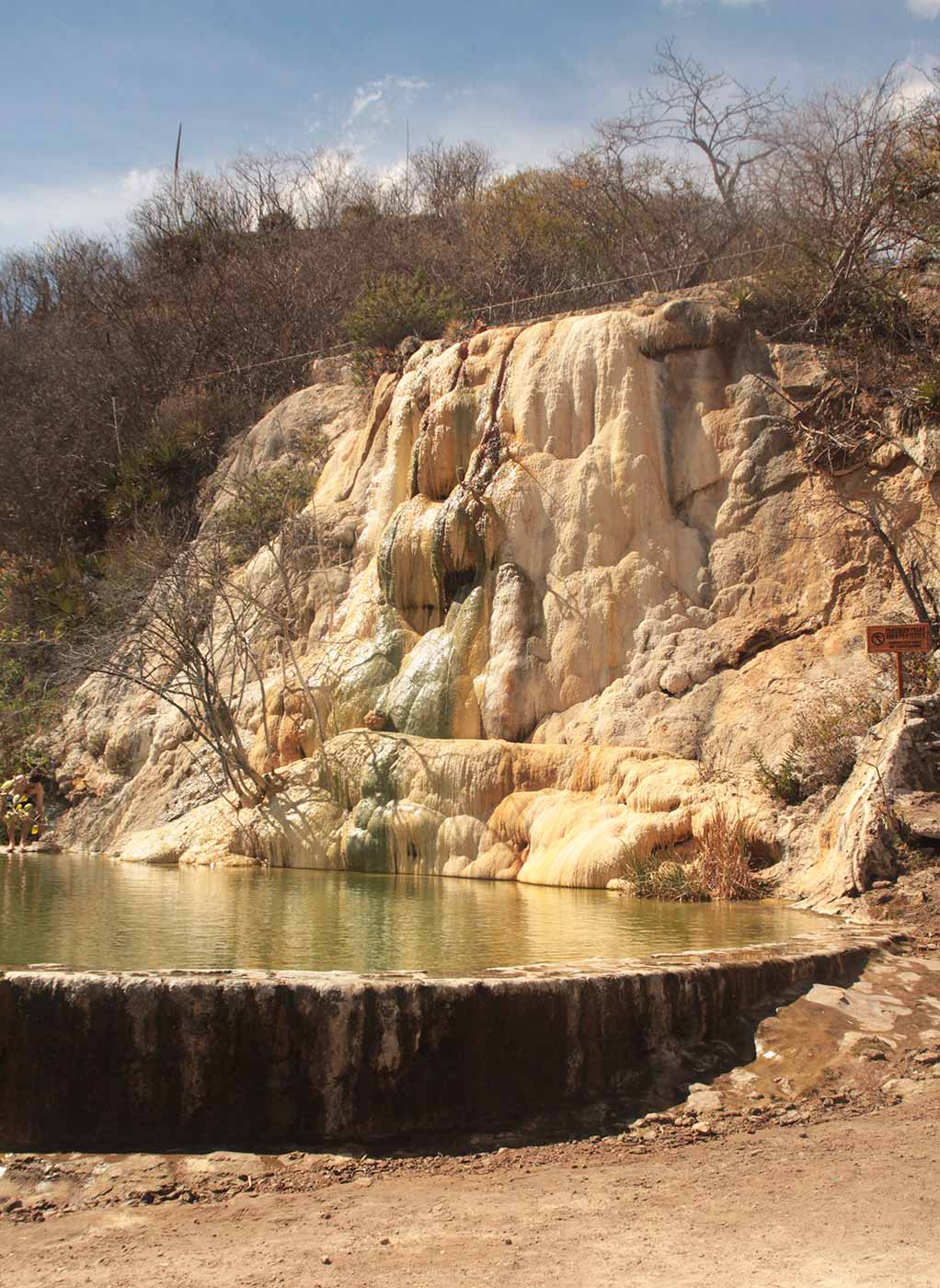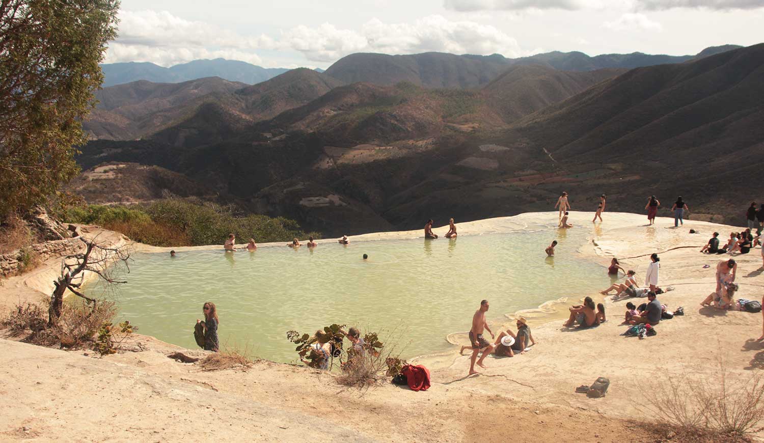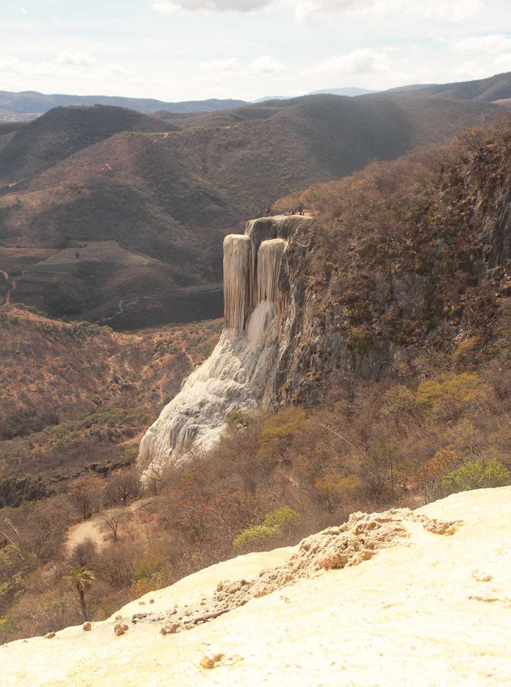 Un site naturel unique, Hierve el agua est une formation géologique, situé à environ 70 km de Oaxaca. Connu pour ses 2 cascades pétrifiés, dû à ses eaux saturé en carbonate de calcium. On peux voir les sources d’eaux, avec plusieurs grands bassins ou l’on peut se baigner, sous un soleil tapant. L’un des bassin donne sur une vue exceptionnel sur les montagnes. Le cadre est juste extraordinaire.