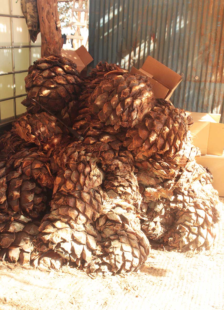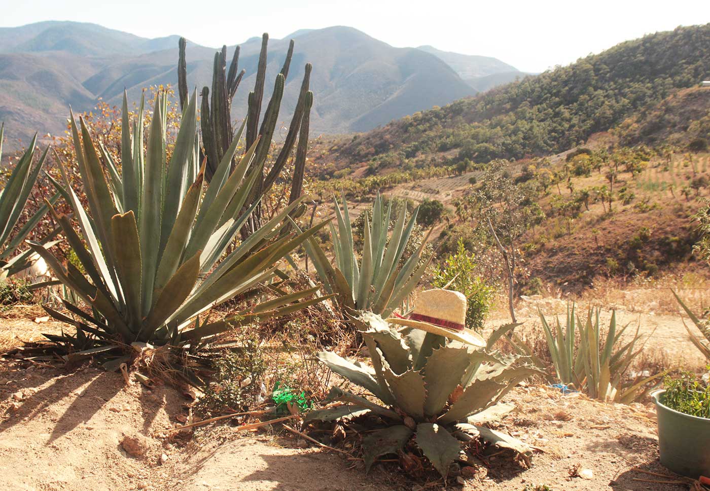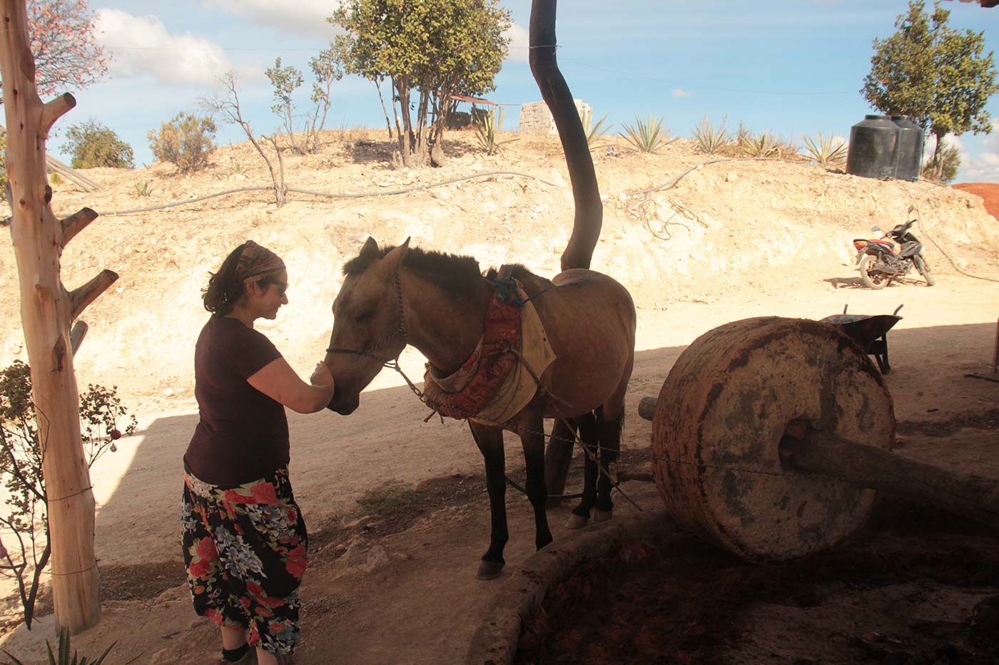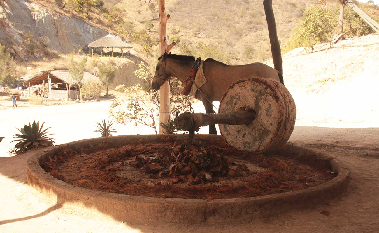 Tout autour des environs, nous croisons de nombreuses petites mezcalerias artisanales. On peut les visiter et en apprendre plus sur le processus de fabrication du mezcal. Les coeurs d’agave sont lentement cuits au bois pendant 3 jours. J’ai même pu goûter à un morceau d’agave cuit, vraiment délicieux avec un petit goût fumé. Les coeurs sont ensuite broyés avec une pierre circulaire, qu’un cheval déplace. La mixture est ensuite distillée. On a pu goûter à plusieurs types de mezcal, et c’est fort, avec environ 45°.